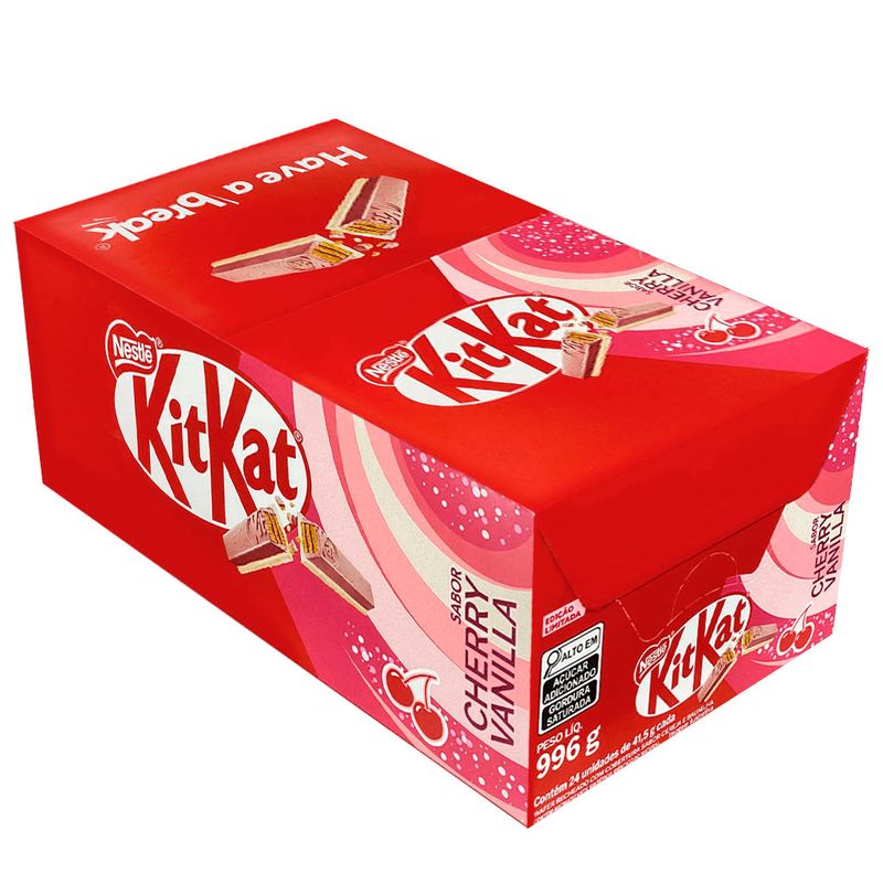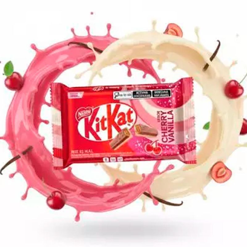 O KitKat Cherry Vanilla combina a crocância irresistível do wafer com um recheio cremoso e uma deliciosa cobertura com sabor de cereja e baunilha. Uma mistura equilibrada entre o doce frutado e a suavidade da baunilha, perfeita para quem gosta de experimentar sabores diferentes sem abrir mão do clássico break de KitKat.
