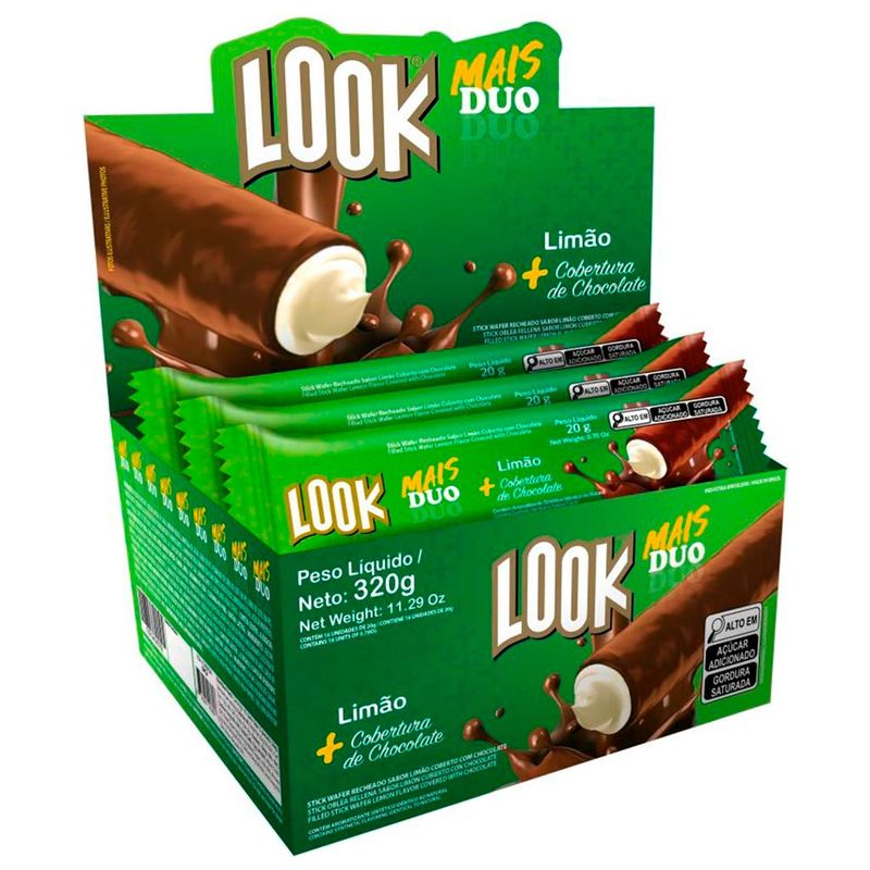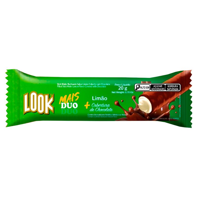 Look Mais Duo, um delicioso stick wafer recheado e coberto com chocolate ao leite. No sabor limão, é leve, crocante e uma explosão de sabores!