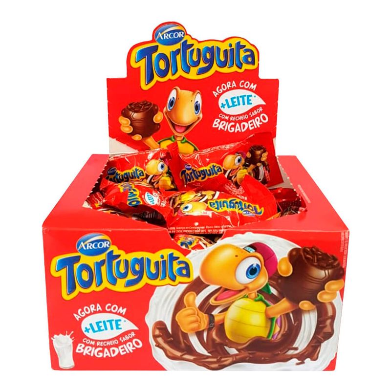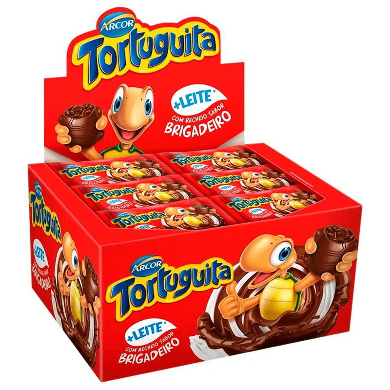 Três cores e três sabores: o chocolate Tortuguita Brigadeiro tem casca de chocolate e um delicioso recheio sabor brigadeiro. A diversão é garantida! Embalagem contendo 24 unidades.