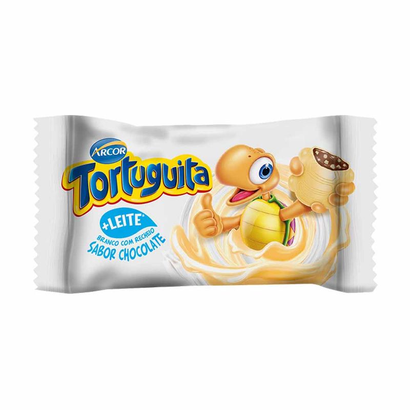 Chocolate Tortuguita Branca tem casca de chocolate branco e um delicioso recheio sabor chocolate. A diversão é garantida! Embalagem contendo 24 unidades.