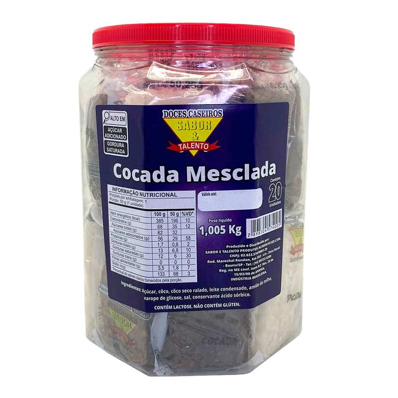 Cocada mesclada branca e escura. Sabor de doce de coco caseiro! Contém 20 unidades embaladas individualmente.