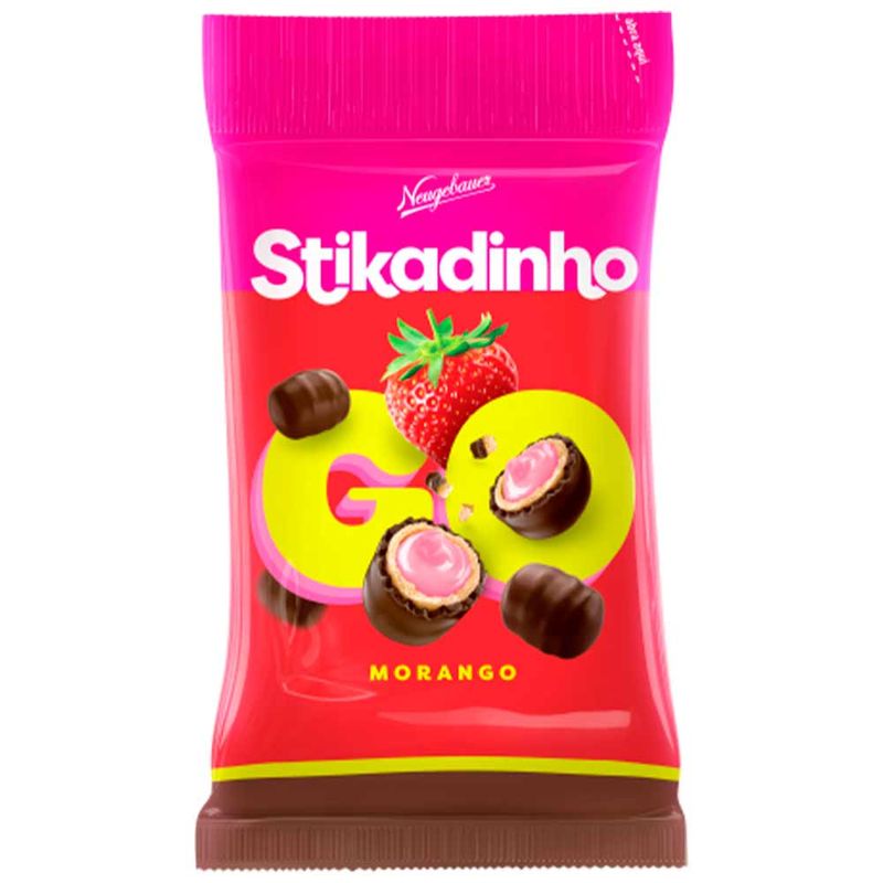 Confeito de wafer crocante, leve, com recheio cremoso sabor morango e cobertura do autêntico chocolate Neugebauer Meio Amargo. Display acompanha 18 unidades de 40g.