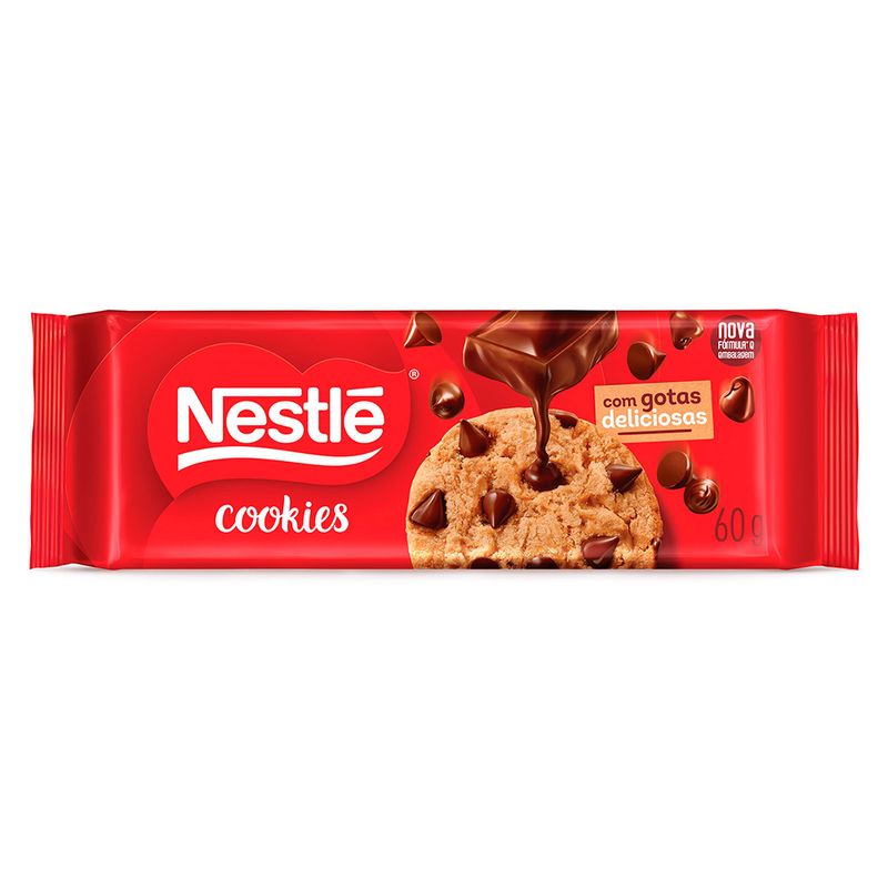 Ingredientes: Farinha de trigo enriquecida com ferro e ácido fólico, gotas de chocolate (25%) (açúcar, massa de cacau, gordura vegetal, leite em pó, glicose, emulsificante lecitina de soja e aromatizante), açúcar, gordura vegetal, leite em pó, sal, farinha de aveia integral, amido, fermentos químicos (bicarbonato de amônio, fosfato monocálcico e bicarbonato de sódio), aromatizantes e emulsificante (lecitina de soja). ALÉRGICOS: CONTÉM DERIVADOS DE TRIGO, LEITE SOJA E AVEIA.PODE CONTER CENTEIO, CEVADA E AVELÃ. CONTÉM LACTOSE. CONTÉM GLÚTEN.