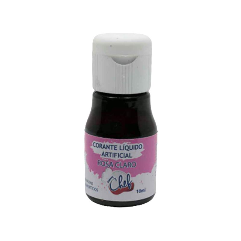 Corante Líquido Artificial Rosa Claro Chef, frasco com 10ml, para fins alimentícios. Ideal para trabalho em aerógrafo, aplicação em bebidas, balas, caldas, geléias, sorvetes e afins.