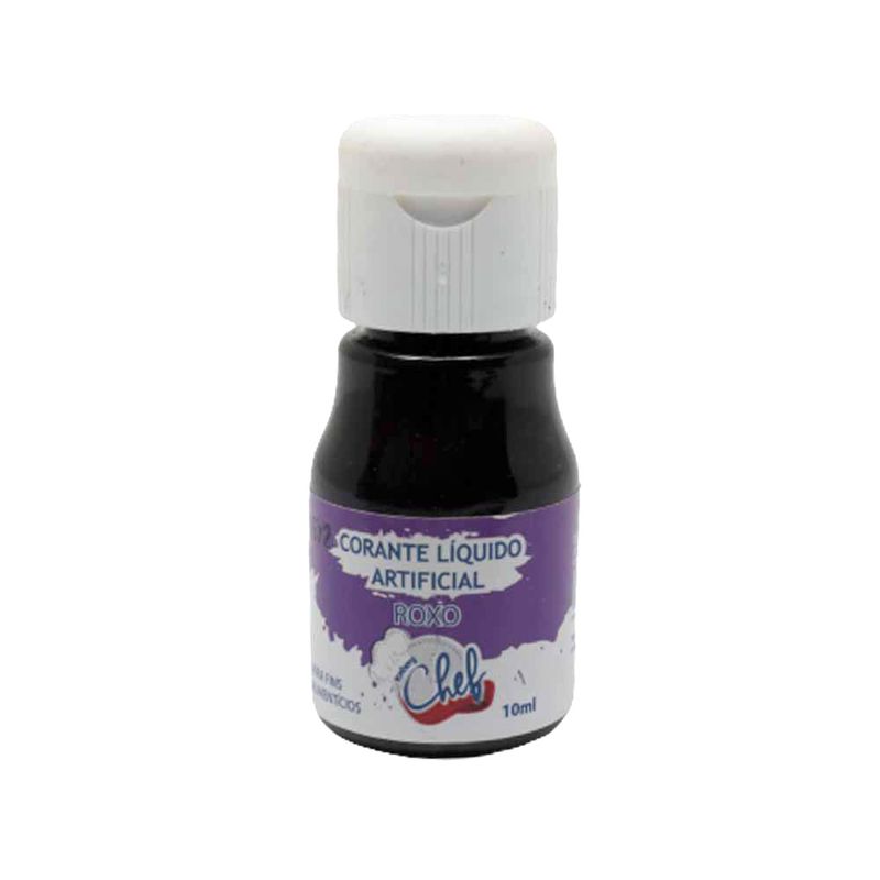 Corante Líquido Artificial Roxo Chef, frasco com 10ml, para fins alimentícios. Ideal para trabalho em aerógrafo, aplicação em bebidas, balas, caldas, geléias, sorvetes e afins.