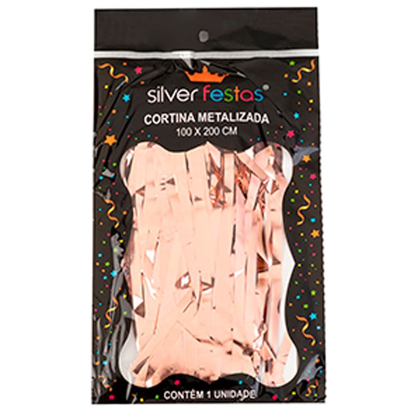 Cortina Decorativa Metalizada Rosê Gold 100x200cm Un - Silver Plastic