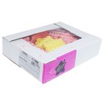 Suspiro, doce de gelatina sabor artificial de tutti-frutti colorido e aromatizado artificialmente. Caixa com 280g, 20 unidades de 14g.