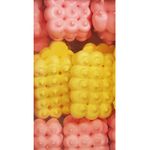 Recheio: açúcar cristal, gelatina, aroma artificial de tutti-frutti, corante vermelho ponceau e amarelo tartrazina