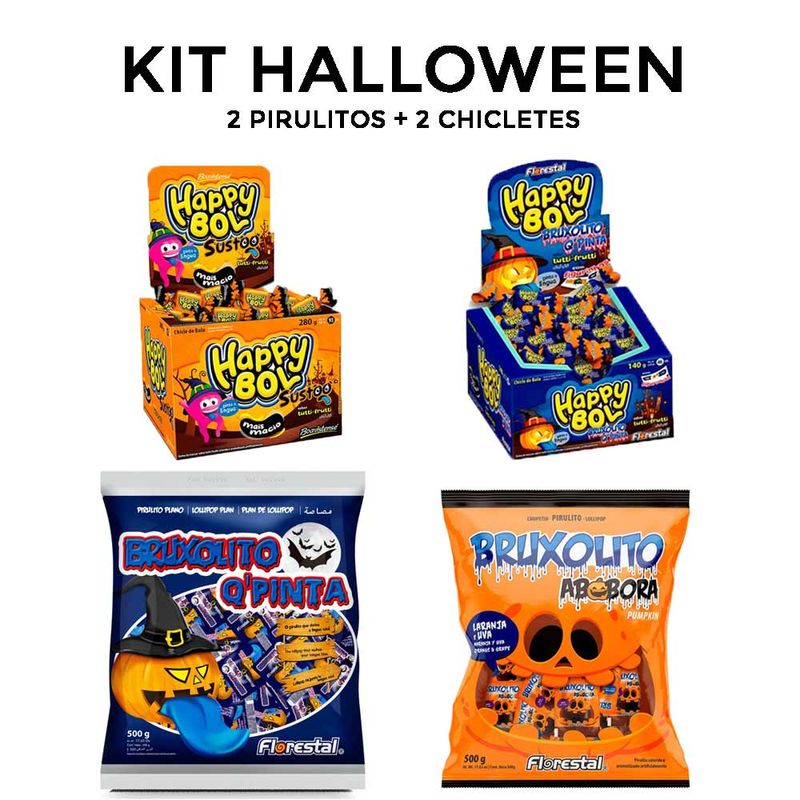 Kit Festa Halloween Dia das Bruxas 1 Pirulito Abóbora e 1 Bruxolito, 1 Chicle Susto e 1 Pinta a Língua