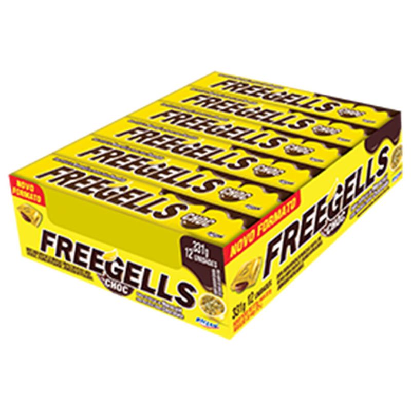 Drops mentolado com recheio de chocolate no sabor maracujá. Display contendo 12 sticks. Cada stick contém 9 unidades.