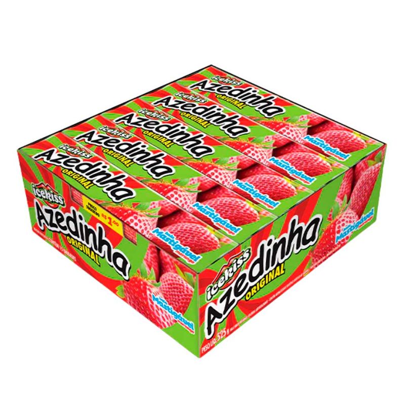 Bala mastigável sabor morango azedinho. Gostosa e macia, vem numa embalagem prática para levar para onde quiser. Contém 15 sticks.