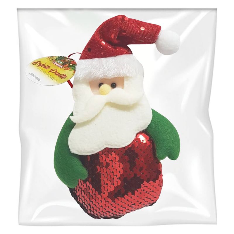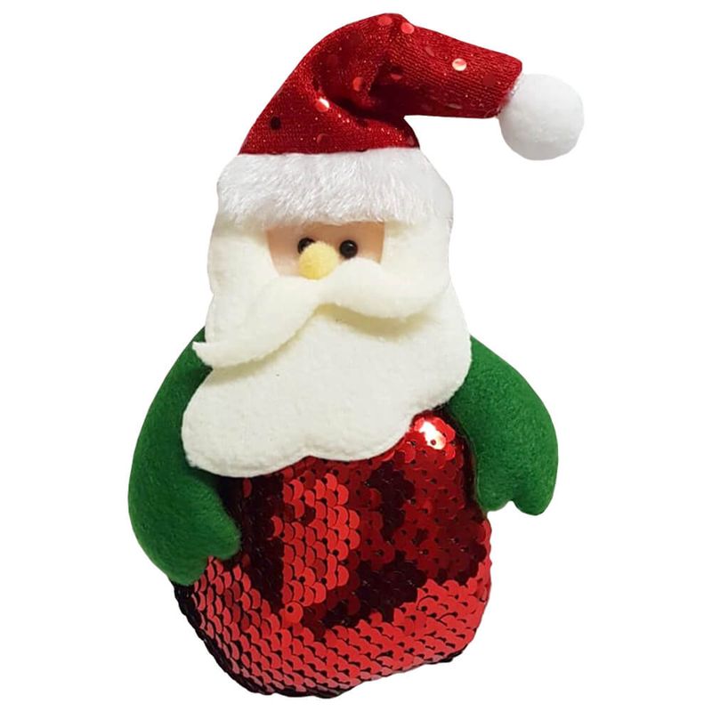 Enfeite para pendurar Noel Paetê. Boneco fofo no formato arredondado de Papai Noel, a barriga é feita em lantejoulas vermelhas e o gorro em paetê vermelho intercaldo. Os braços são em feltro, barba e borda do gorro são feitos em material felpudo. Use-o para enfeitar portas, janelas ou qualquer espaço para deixar sua festividade de Natal mais bonita e alegre. Acompanha uma fita de cetim para pendurar.