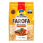 Farofa de mandioca artesanal Da Terrinha. Produzida com ingredientes e temperos selecionados para garantir um sabor delicioso e uma textura crocante.