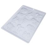 Forma ideal para chocolate! Contém 11 cavidades, sendo: 2 vacas, 2 galinhas, 2 porcos, 2 ovelhas, 2 cavalos e 1 pato. Forma de uma face de acetato, não contém silicone.