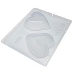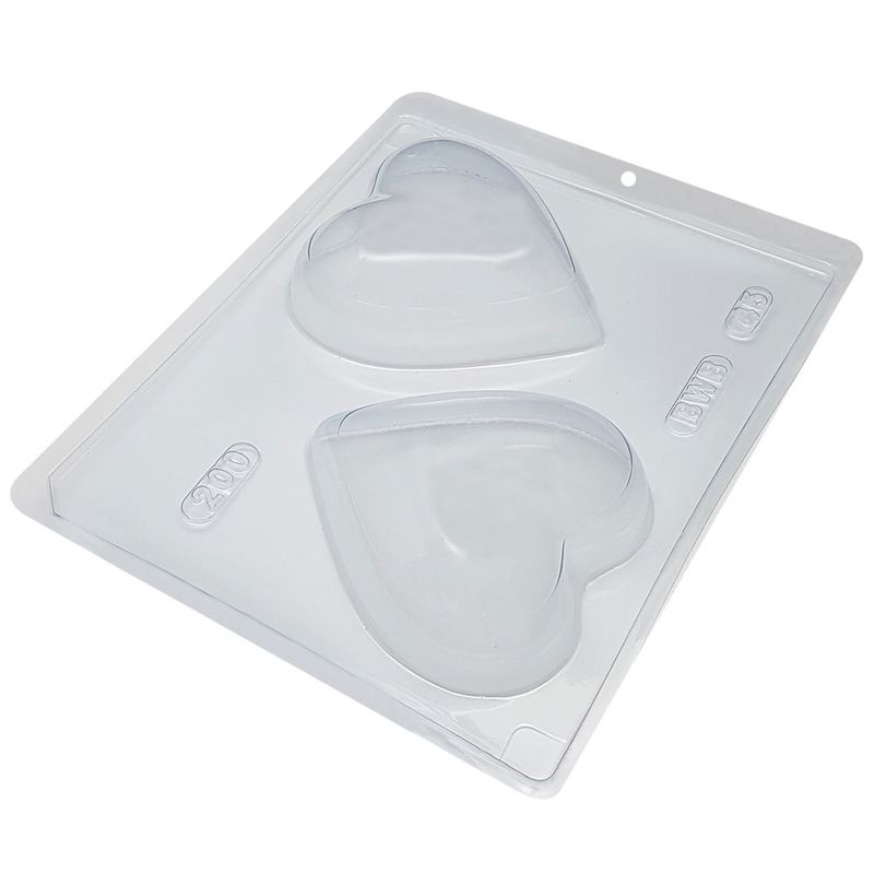 Forma em formato de coração ideal para produção de chocolates. Peso Médio: 200g. Medidas: Comprimento 104mm x Largura 98mm x Altura 56mm. Composto de três partes, duas de acetato e uma de silicone. Rápido, fácil e prático! Modo de fazer: Derreta o chocolate e de o ponto, em seguida coloque o chocolate até a marca indicada na forma lisa e bata o fundo da forma na mesa para retirar o ar, depois coloque ás duas formas encaixadas, pressionando-as até o chocolate preencher toda a forma (flexível em contato com o chocolate). Vire a forma e coloque na geladeira até destacar a forma lisa do chocolate. (Aproximadamente 11 min. ), retire a forma com vinco de dentro e depois com cuidado a forma flexível. Seu chocolate estará pronto. Atenção: Limpe sua forma entre um processo e outro apenas com papel absorvente. Após o termino do trabalho, limpe com pano umedecido em agua morna. (Deixe secar naturalmente nunca use detergente, sabão ou bucha).