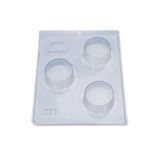 Forma de silicone ideal para produção de pão de mel. Peso médio da casquinha: 30g. Medidas: Alt: 24mm x Diam: 59mm. Composto de três partes, duas rígidas de acetato e uma flexível de silicone. Rápido, fácil e prático! Modo de fazer: Derreta o chocolate e de o ponto, em seguida coloque o chocolate até a marca indicada na forma lisa e bata o fundo da forma na mesa para retirar o ar, depois coloque ás duas formas encaixadas, pressionando-as até o chocolate preencher toda a forma (flexível em contato com o chocolate). Vire a forma e coloque na geladeira até destacar a forma lisa do chocolate. (Aproximadamente 11 min. ), retire a forma com vinco de dentro e depois com cuidado a forma flexível. Seu chocolate estará pronto. Atenção: Limpe sua forma entre um processo e outro apenas com papel absorvente. Após o termino do trabalho, limpe com pano umedecido em agua morna. (Deixe secar naturalmente nunca use detergente, sabão ou bucha).
