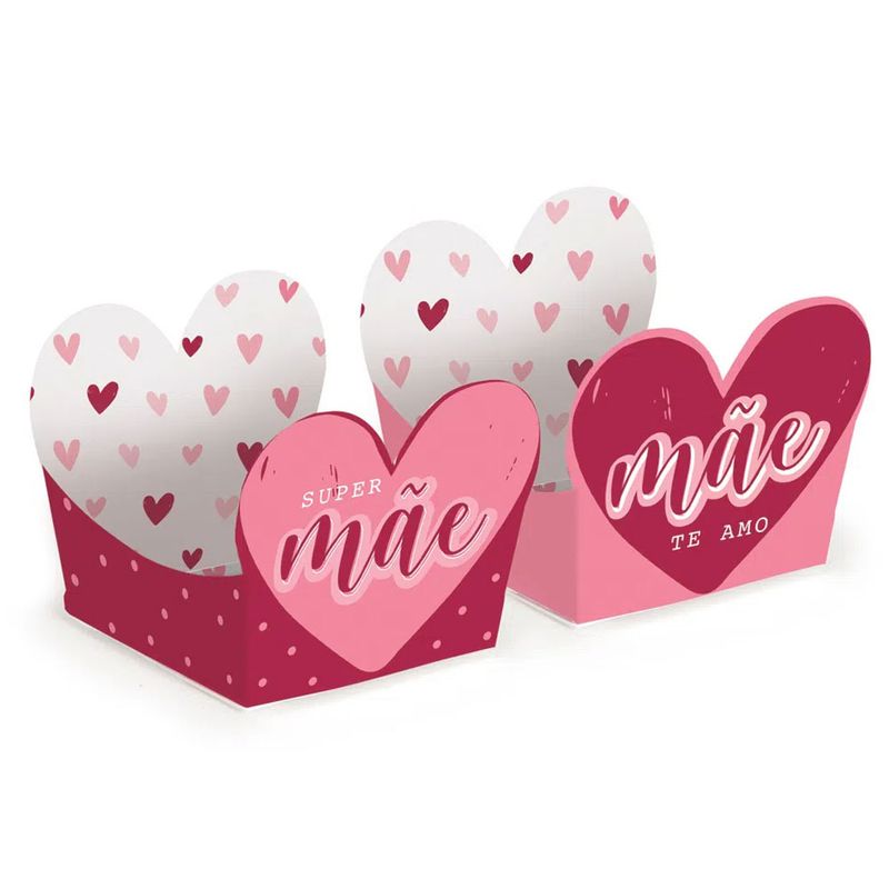 Forminha de Coração Mãe, forminha para doces para deixar sua mãe ainda mais feliz. Contém 24 unidades.Material: papel couche e pigmento colorido.