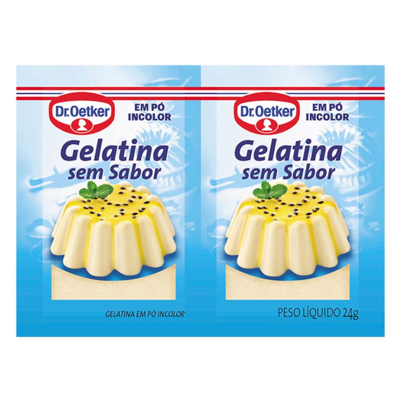 Gelatina sem sabor e incolor ideal para preparo de variadas receitas! Embalagem com 2 unidades de 24g.