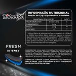 Ingredientes: goma base, óleo vegetal hidrogenado, óleo vegetal, edulcorantes: sorbitol, xilitol, isomalte, maltitol (contém derivados de trigo), manitol, aspartame e acesulfame de potássio, antiumectante talco, aromatizantes, umectantes: triacetina e glicerina, emulsificantes: lecitina de soja e mono e diglicerídeos de ácidos graxos e corantes: indigotina, carmim e azul brilhante FCF. CONTÉM GLÚTEN. CONTÉM FENILALANINA.