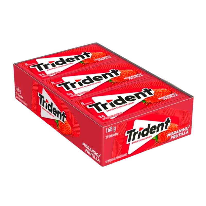 O tradicional e famoso trident no sabor morango. Você pode dividir com quem quiser, levar na bolsa e aproveitar cada segundo dos sabores duradouros que só a Trident tem. Não contém açúcar. Embalagem contendo 21 unidades.