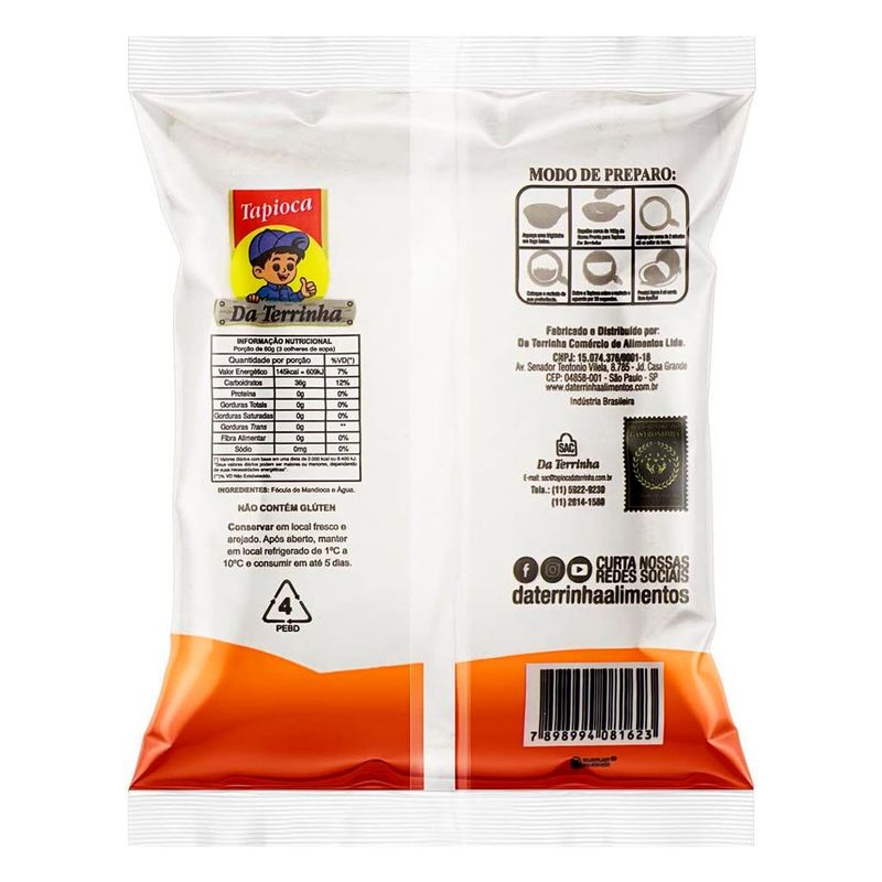 Ingredientes: Fécula de mandioca e água. Não contém glúten.