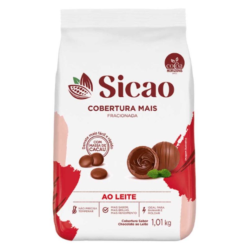Cobertura Chocolate Ao Leite Fracionado, pacote de 1,01kg. Sicao Mais