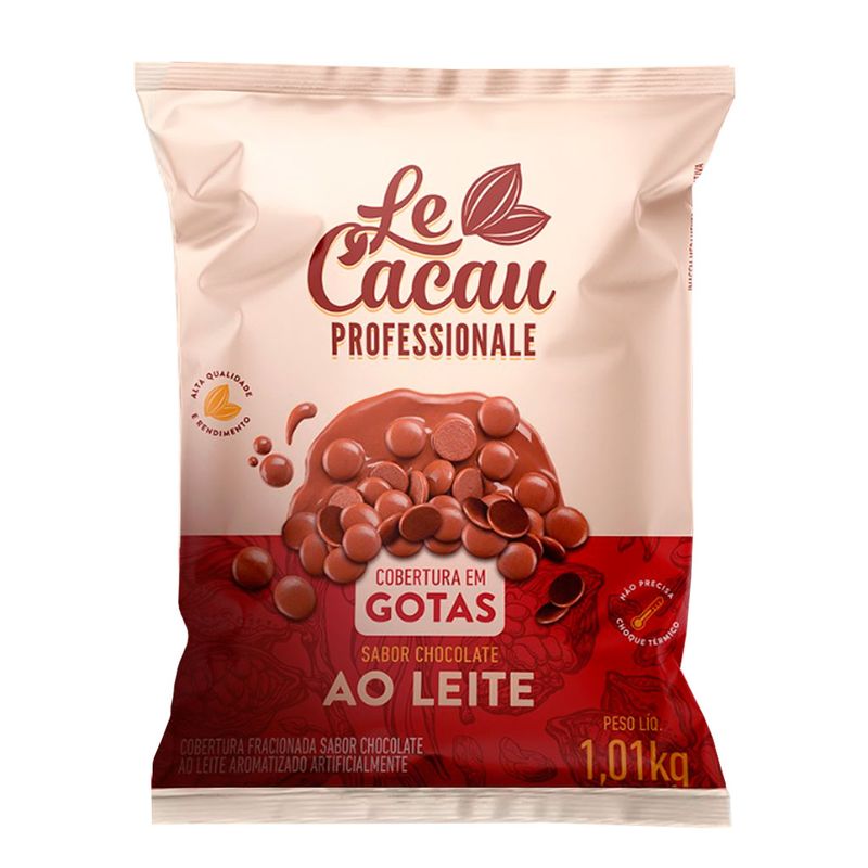 Cobertura fracionada em gotas sabor chocolate ao leite. Ideal para uso culinário e preparo de diferentes receitas. Não é necessário choque térmico. Fácil, prático e gostoso.