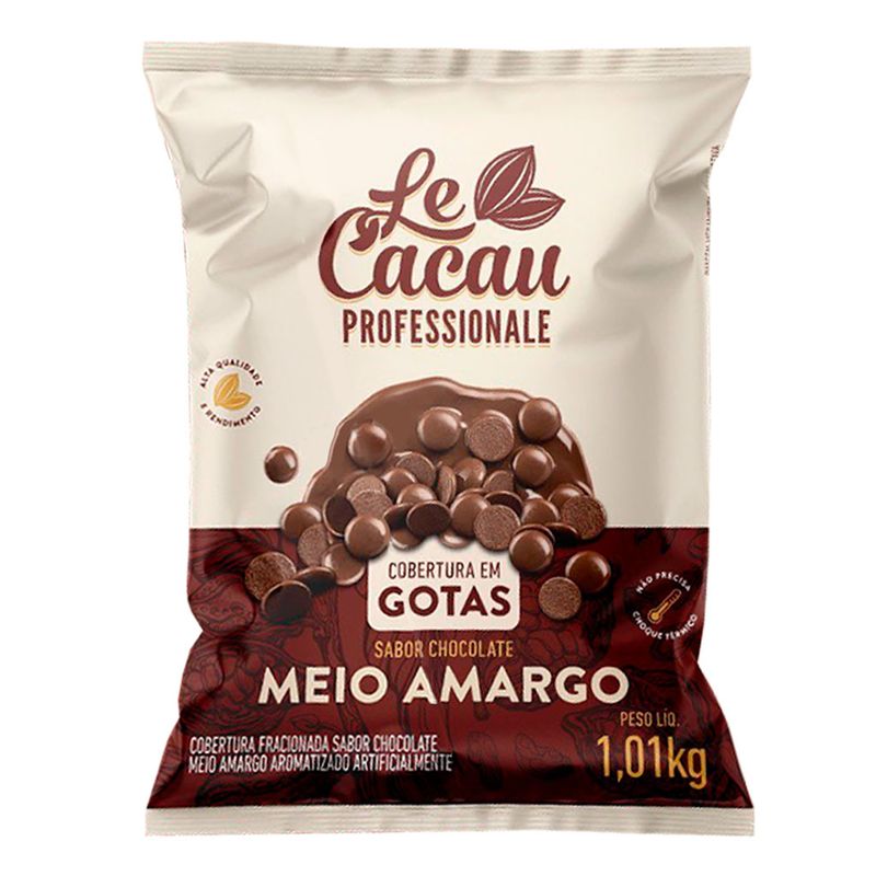 Cobertura fracionada em gotas sabor chocolate meio amargo. Ideal para uso culinário e preparo de diferentes receitas. Não é necessário choque térmico. Fácil, prático e gostoso.