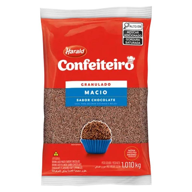 O granulado confeiteiro sabor chocolate é ideal decorar bolos, pães doces, sonhos de padaria e donuts. crocante e colorido! Embalagem de 1,010kg.