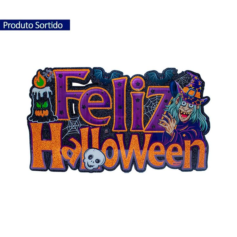 Produto sortido Happy Halloween ou Feliz Halloween. Envio conforme disponibilidade de estoque, sem opção de escolha.