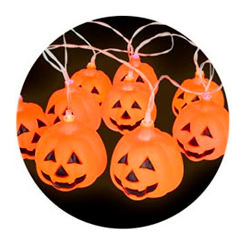 Cordão de luz led com enfeite de abóbora ideal completar a decoração de festas de Halloween. Use a criatividade e deixe a sua festa mais divertida!