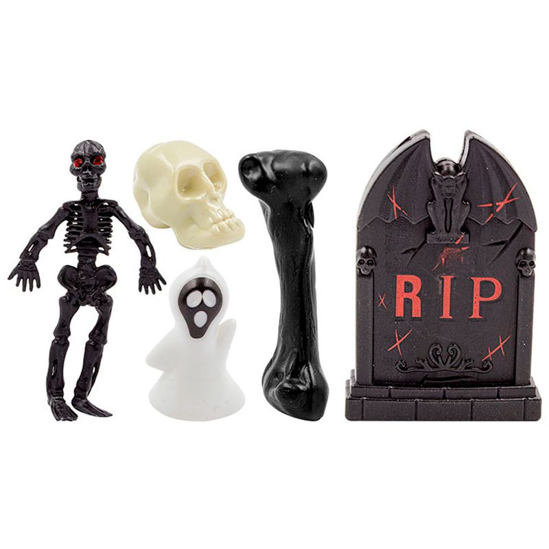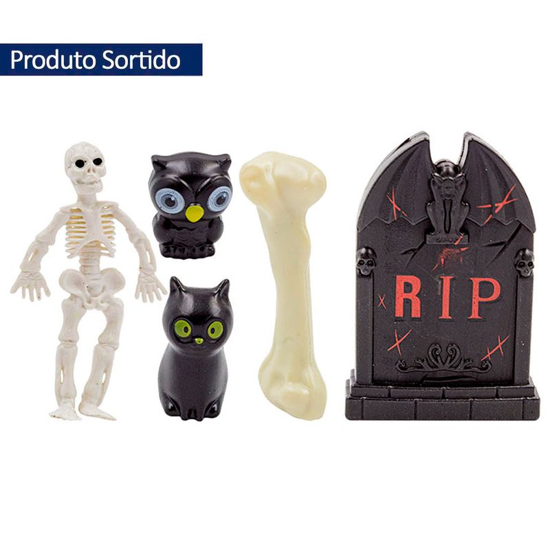 Conjunto de enfeites com tema de cemitério decorativos ideal para complementar a decoração de Halloween. Use a criatividade e deixe a sua festa mais divertida!