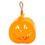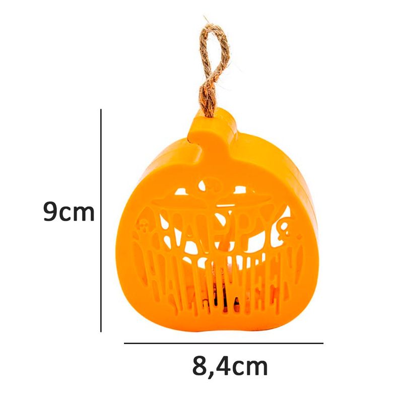 Enfeite de luminária de abóbora com luzes coloridas para complementar o tema da sua festa. De ótima qualidade, elegante e vai dar um toque especial e assustador! Em uma face tem um rosto de abóbora e no outro happy halloween.
