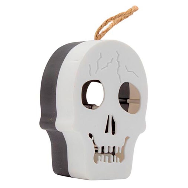 Enfeite de luminária de caveira com luzes coloridas para complementar o tema da sua festa. De ótima qualidade, elegante e vai dar um toque especial e assustador! Uma face é branca e a outra preta.