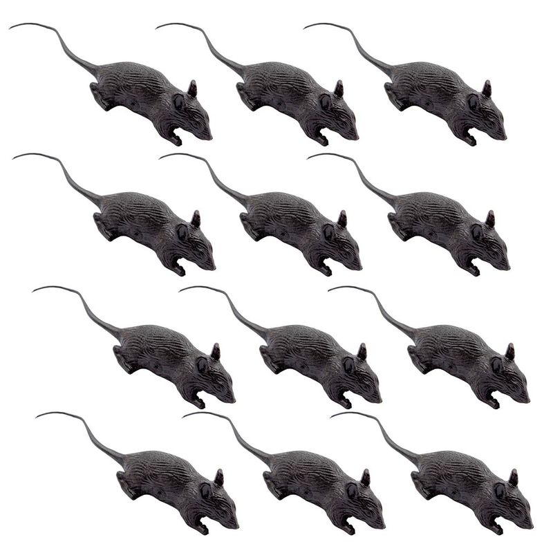 Ratos de plástico com detalhes em alto relevo, para decoração de festas de Halloween. Embalagem com 12 unidades iguais. Medidas: 9 x 2cm