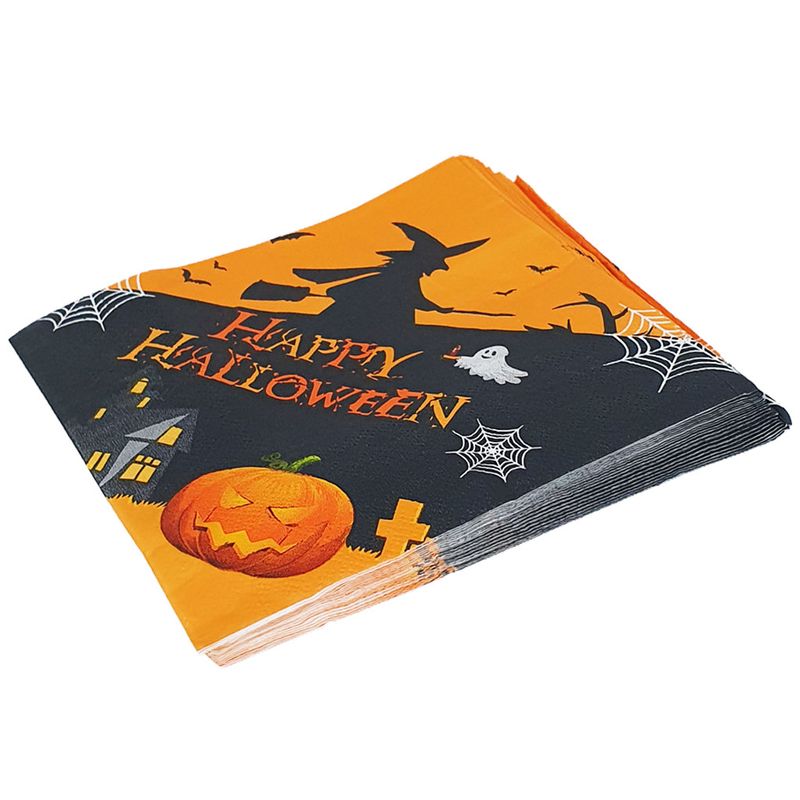 Guardanapo estampado com tema de Halloween ideal para combinar com a decoração, trazer mais praticidade e dar um toque especial à sua festa de Dia das Bruxas.