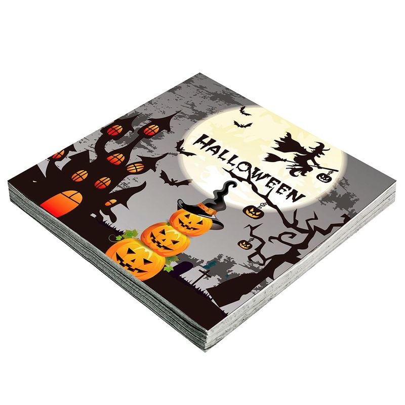 Guardanapo estampado com tema de Halloween ideal para combinar com a decoração, trazer mais praticidade e dar um toque especial à sua festa de Dia das Bruxas.