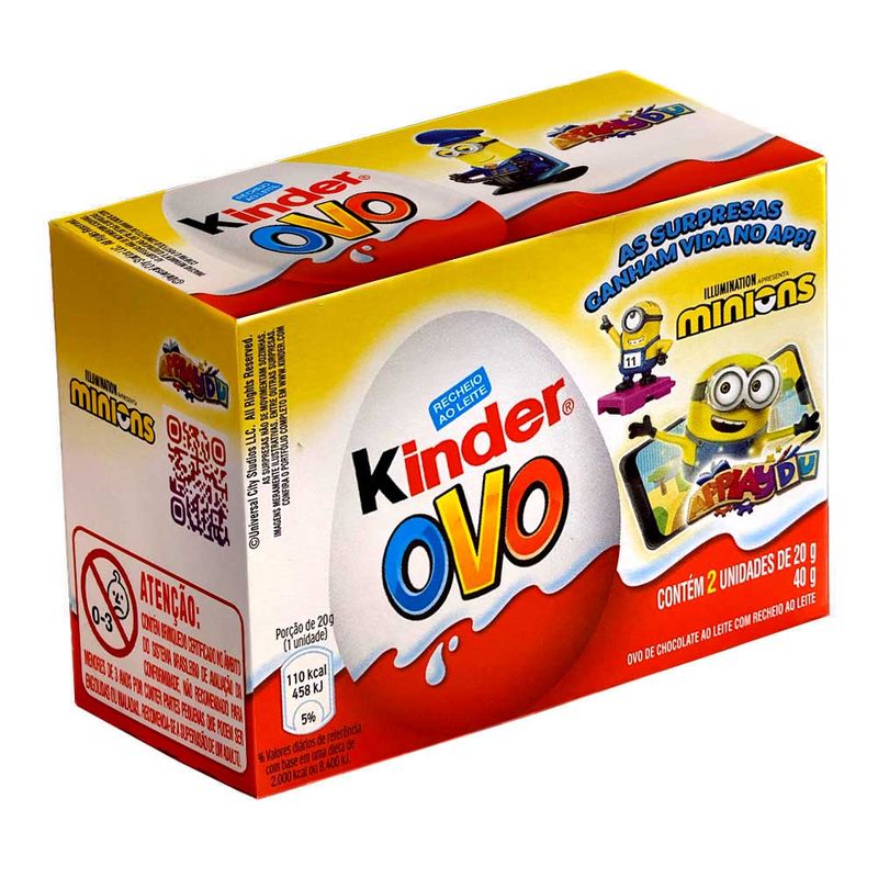 Kinder Ovo é o delicioso chocolate Kinder com recheio ao leite em formato de ovinho. Vem com diversas surpresas super divertidas.