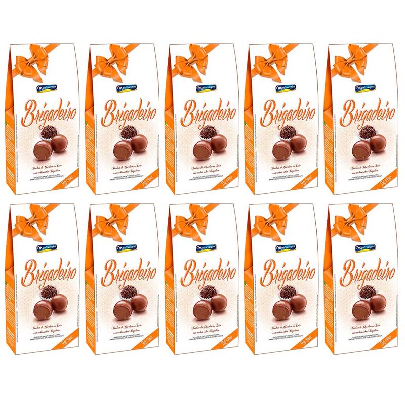 Deliciosos bombons de chocolate ao leite com recheio sabor brigadeiro. Kit contendo 10 caixinhas de 55g. Cada caixinha contém 5 unidades.