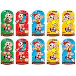 Bombons de chocolate ao leite com recheio sabor brigadeiro. Vem numa linda embalagem com os personagens da Turma da Mônica em tema natalino. Pacote de 55g contendo em média 5 bombons.