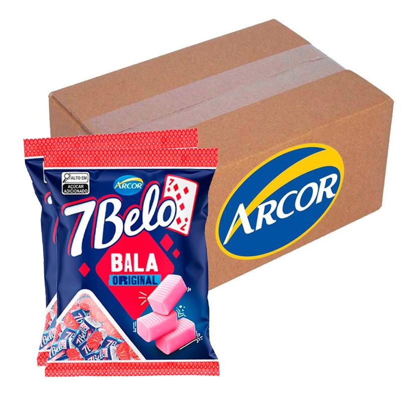 A tradicional bala 7 Belo com gostinho de framboesa. Kit contendo 14 pacotes de 500g cada.