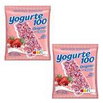 Tradicional e deliciosa bala mastigável com sabor de iogurte de morango. Kit contendo 2 pacotes de 600g. Embalagem de 400g contendo aproximadamente 100 unidades.