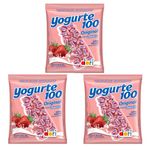 Tradicional e deliciosa bala mastigável com sabor de iogurte de morango. Kit contendo 3 pacotes de 600g. Embalagem de 400g contendo aproximadamente 100 unidades.