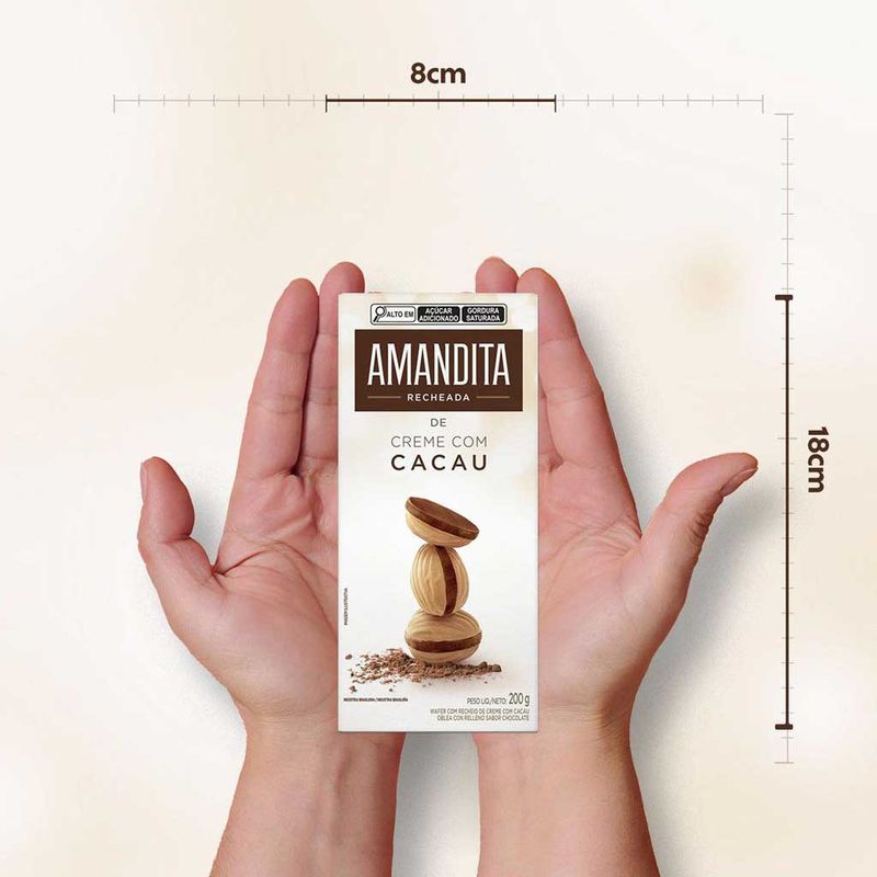 Amandita é a deliciosa combinação de wafer com irresistível recheio de creme com cacau. A crocância perfeita do wafer e a cremosidade do creme de cacau que derrete na boca são perfeitos para presentear familiares ou amigos, e até mesmo compartilhar em momentos únicos. Kit com 3 caixas de 200g.