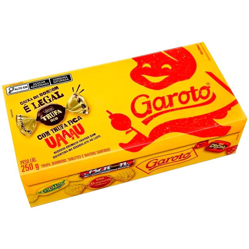 Composta pelos clássicos chocolates da Garoto, possui uma diversidade de sabores que agradam a todos os gostos. Ideal para presentear ou saborear a qualquer hora e em qualquer lugar. Kit contendo 4 caixas de 250g cada.