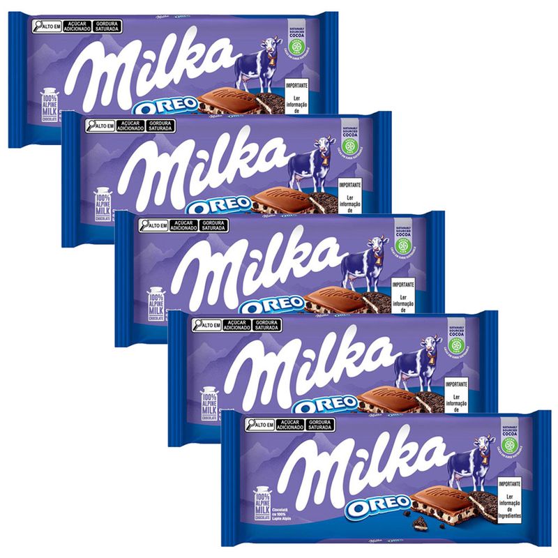 O tradicional e delicioso chocolate alpino Milka que derrete na boca recheado com o famoso biscoito Oreo. Kit com 5 unidades.