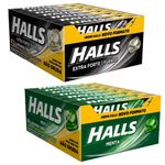 Ingredientes Halls Extra Forte: açúcar, xarope de glicose, óleo vegetal, óleo vegetal hidrogenado, aromatizantes, acidulante ácido cítrico, reguladores de acidez: citrato de potássio e carbonato de sódio, emulsificantes: polisorbato 80 e lecitina de soja, corante azul brilhante FCF e glaceante talco. ALÉRGICOS: CONTÉM DERIVADOS DE SOJA E PODE CONTER DERIVADO DE LEITE.