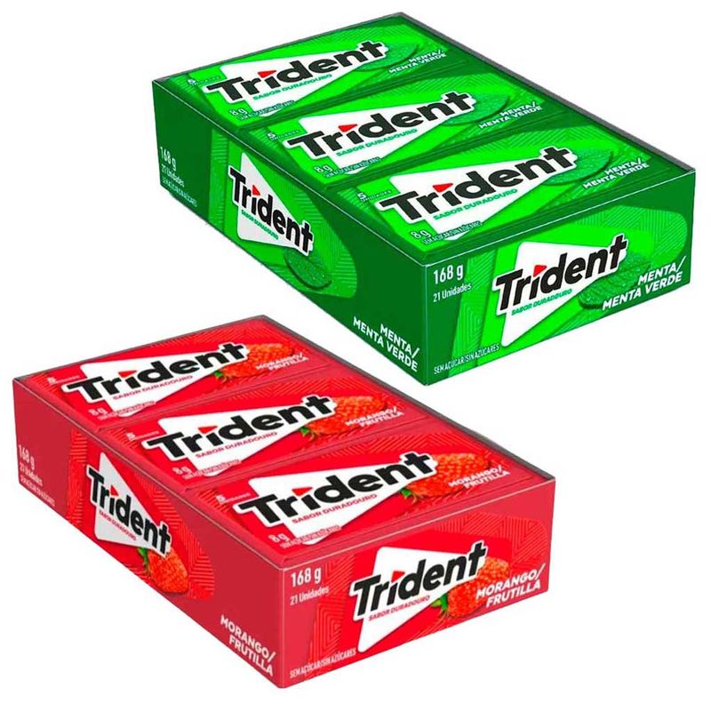 Trident te ajuda a tornar o dia mais leve e divertido, destravando os pequenos momentos de tensão a cada mascada. Kit com duas caixas com 21 unidades.