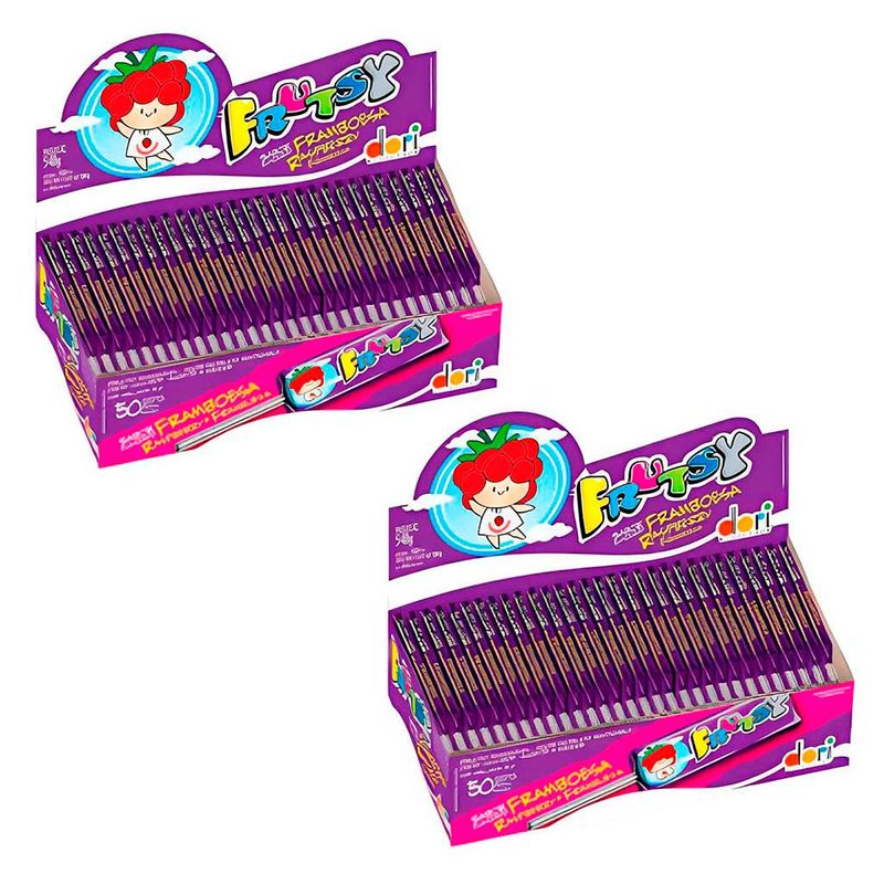 A bala frutsy virou pirulito sabor framboesa. Kit com 2 pacotes. Na versão mastigável macio, saboroso e divertido. Embalagem contendo 50 unidades.