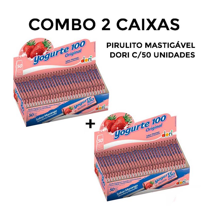 Iogurte 100 o pirulito que é 100% o sabor do iogurte natural. Delicioso pirulito mastigável de iogurte de morango que que é uma delícia. Ingredientes: Açúcar, xarope de glicose, gordura vegetal hidrogenada, acidulante ácido cítrico, estabilizante lecitina de soja, aromatizante natural e corante artificial vermelho 40.